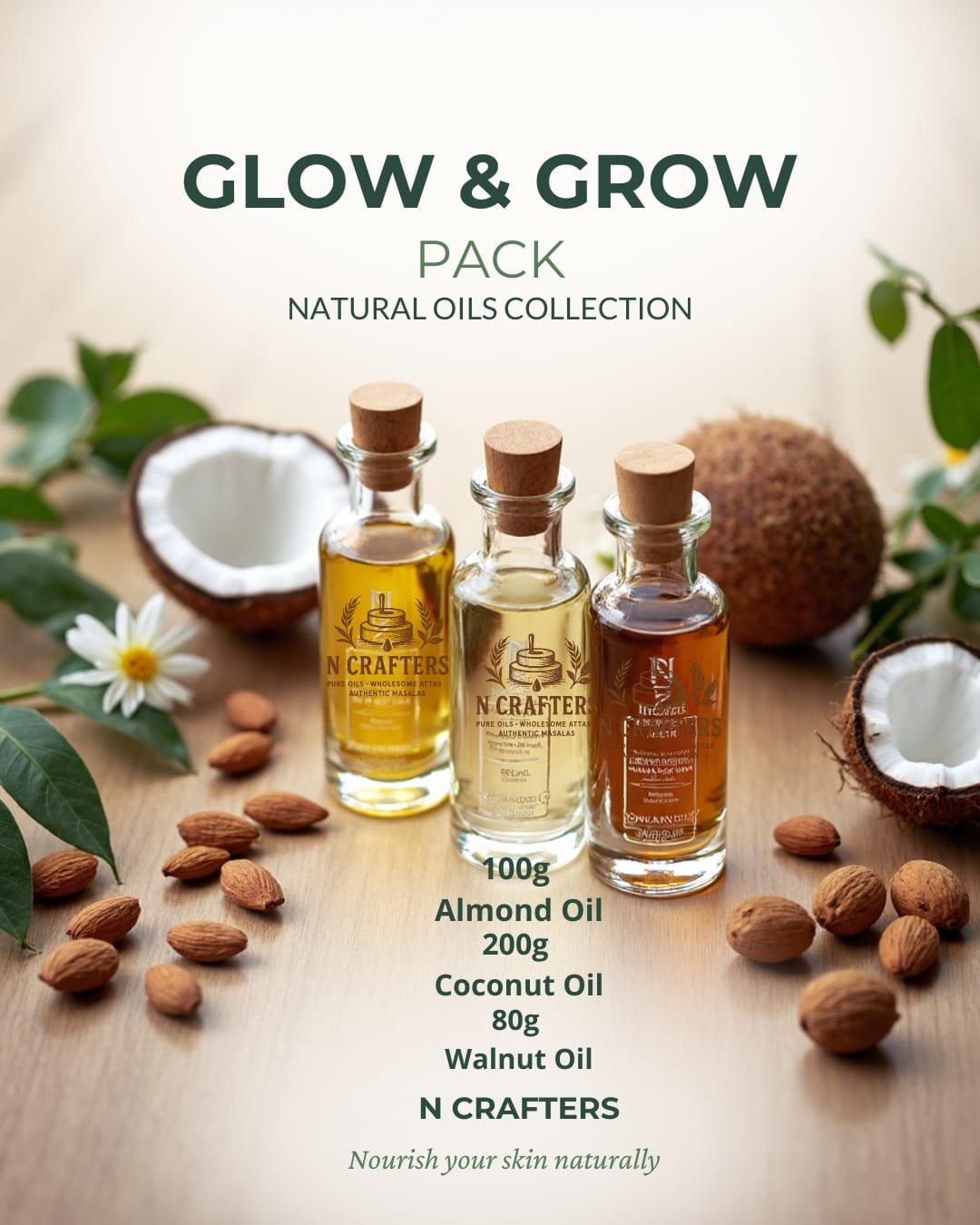 Perfect natural trio for deep nourishment — face, hair & wellness!
